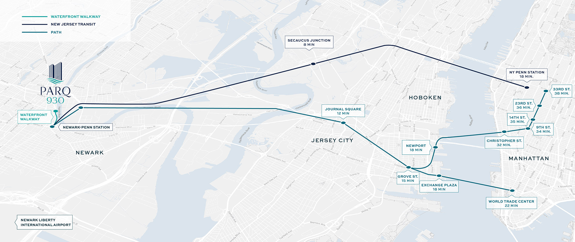 - Private Waterfront Walkway to Newark Penn Station